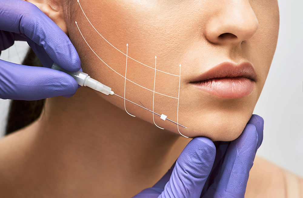 PDO Threads are needles that are pre-loaded with a PDO (Polydioxanone) thread, or absorbable sutures. Polydioxanone is a biodegradable polymer frequently used in medical devices and can be fully absorbed by the body and does not create any scar tissue. The PDO thread is then injected at the subdermal level where they instantly begin to tighten and lift the skin. As the threads are being dissolved, usually taking 4-6 months, they stimulate collagen growth which helps lift the face